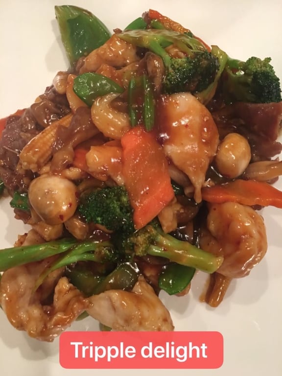 A speciality delicacy Triple Delight Chinese Food is often a Chinese dish that includes meat chicken shrimp or beef veggies and spices. It consists of three portions of meat with vegetables in the centre and typically comes.